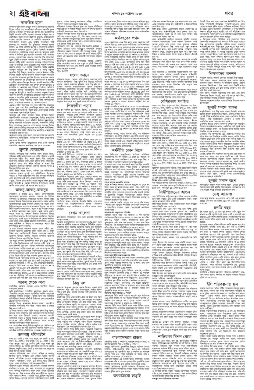 অক্টোবর ১৮, ২০২৫ – দৈনিক এই বাংলা