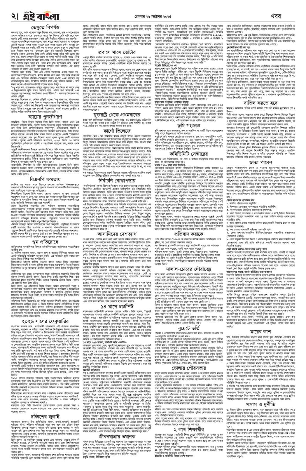 অক্টোবর ২৬, ২০২৫ – দৈনিক এই বাংলা